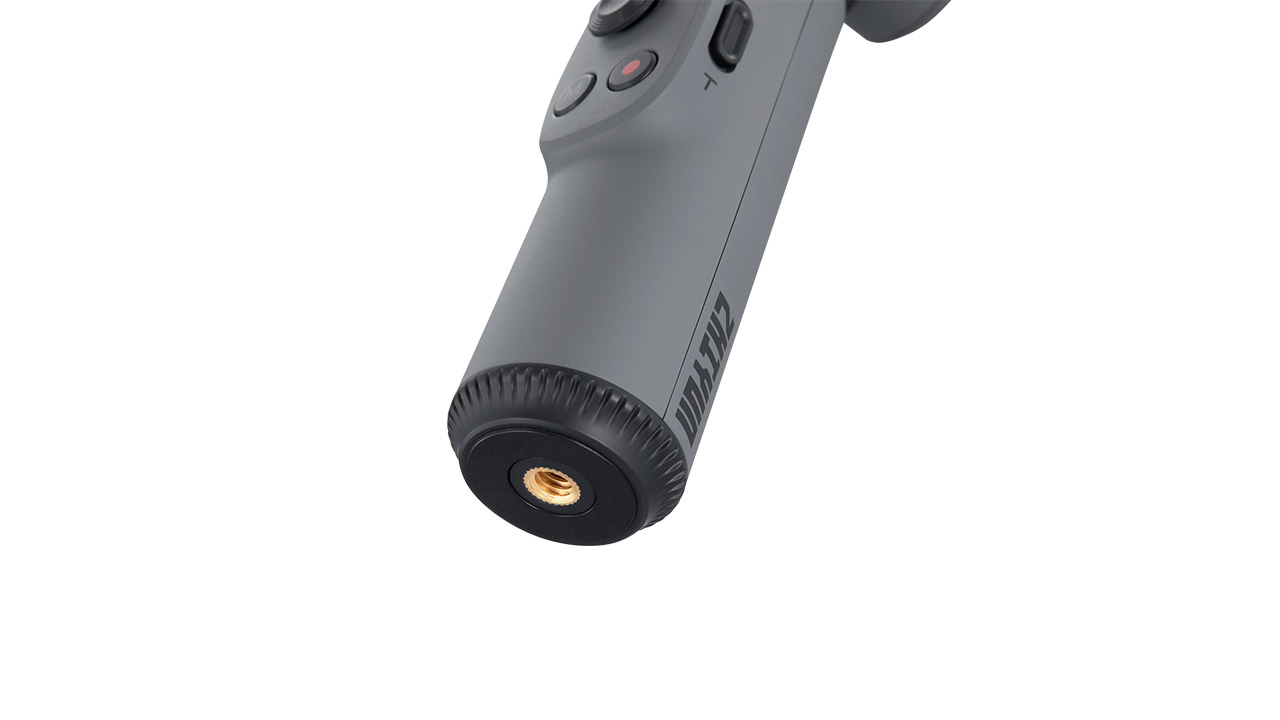 Der Smooth-X wiegt selbst nur 246 Gramm und soll eine zulässige Traglast von etwas kryptischen „200 ± 35 g“ zulassen. Durch Drehen des vertikalen Arms lässt sich der Gimbal in ein handtellergroßes Gadget verwandeln, das dann klein genug ist, um es in einen Rucksack oder sogar in die Hosentasche zu stecken. Auch bei Ultraweitwinkelaufnahmen soll die Achse niemals die Sicht blockieren. Es gibt eine integrierte Aluminium-Teleskopstange, die die Reichweite auf bis zu 26 Zentimeter erweitert. Zhiyun verspricht dabei eine besonders einfache Bedienung. Mit dem „handlichen“ Bedienfeld kann man aufnehmen, filmen und das Zoomen steuern. Über die multifunktionalen M-Taste wählt man verschiedene Modi schaltet zwischen Quer- und Hochformat um.