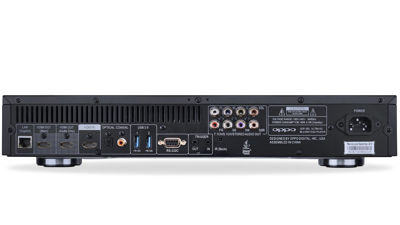 Der UDP-203 bietet zwei HDMI-Ausgänge – einmal HDMI 2.0 für den Anschluss an den 4K-TV sowie eine HDMI-1.4-Buchse, womit man das Audiosignal separat weitergeben können soll.