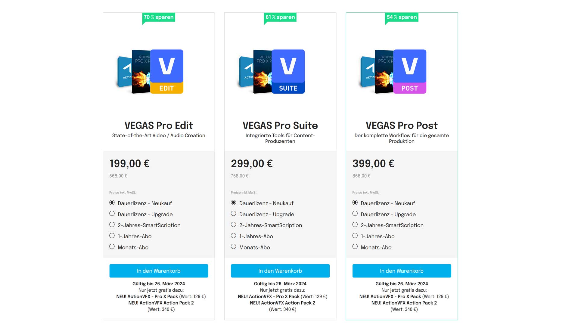 Vegas Video hat Magix vor einigen Jahren von Sony zugekauft und betrachtet dieses inzwischen als "Fokus-Produkt". Doch auch hier wird man sich überlegen, ob es künftig noch drei unterschiedliche Versionen sein müssen, ober ob man mit einer weniger auskommt.