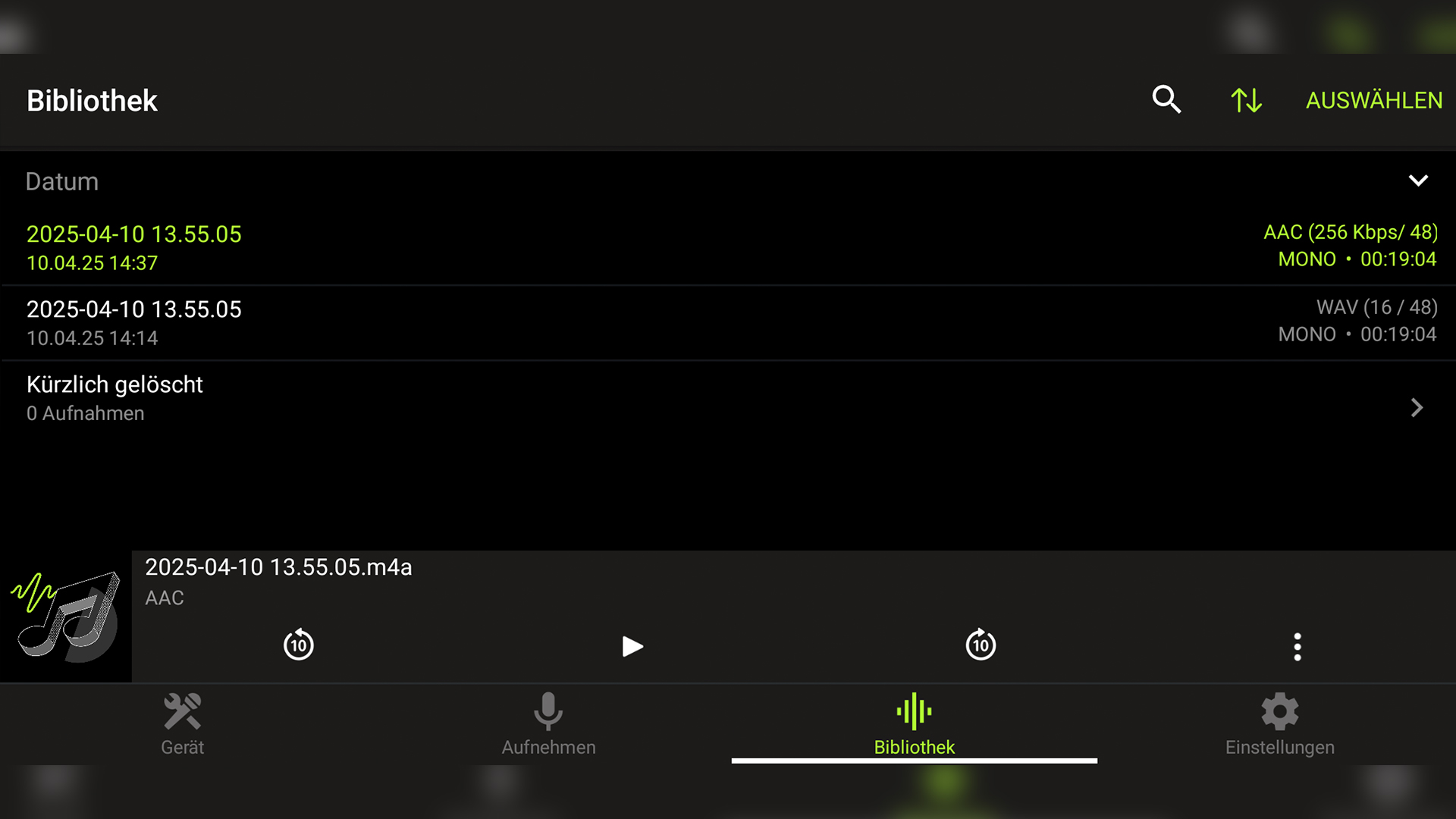 - Aufnahmefunktion nur über Motiv Audio-App