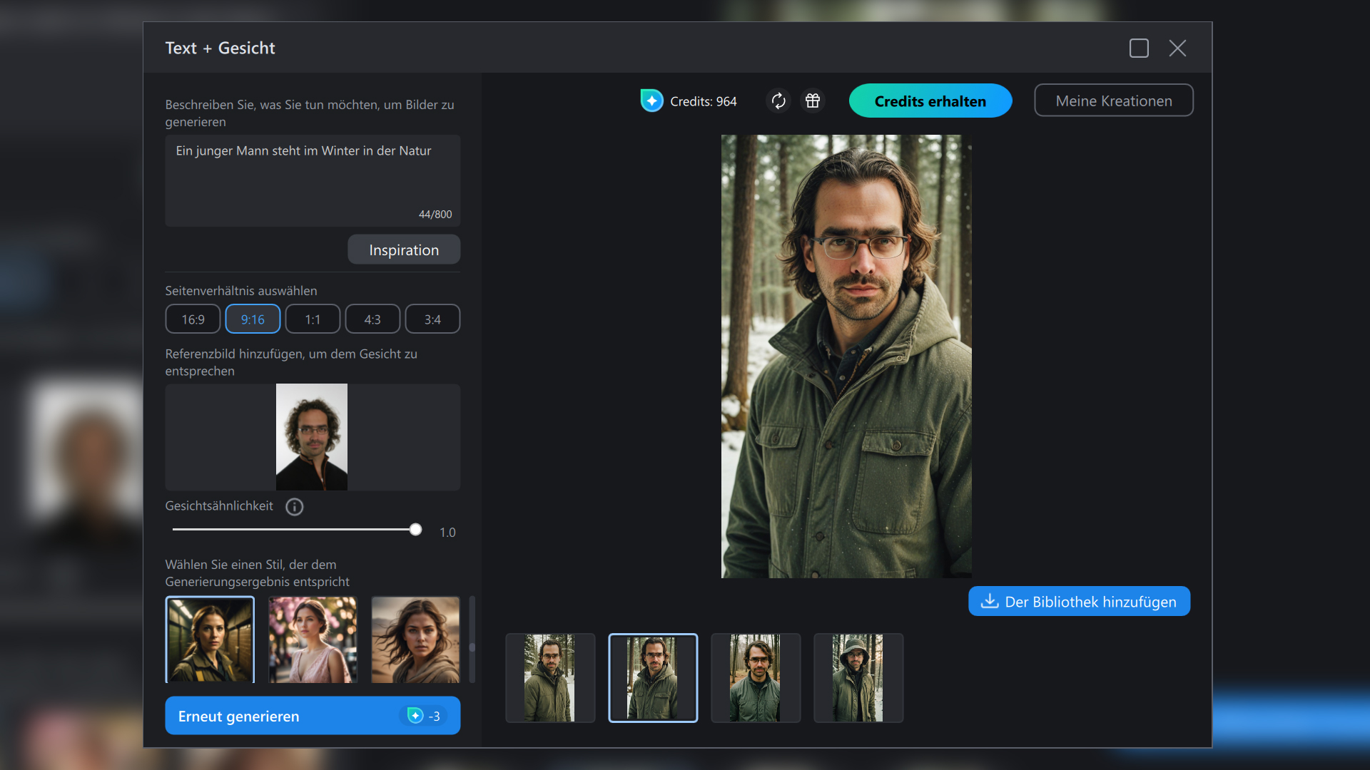 KI-BILDGENERATOR Der KI-Bildgenerator ist nicht neu, wurde für die aktuelle Version aber verbessert. Jetzt sind neben 1:1 auch 16:9, 9:16, 4:3 und 3:4-Formate möglich, zudem kann man nun mittels eines Referenzbildes genauere Vorgaben an die KI geben. Klassische KI-Fehler wie Alien-Schrift und Hände mit deformierten Fingern treten nach wie vor auf, wenn auch weniger auffällig.