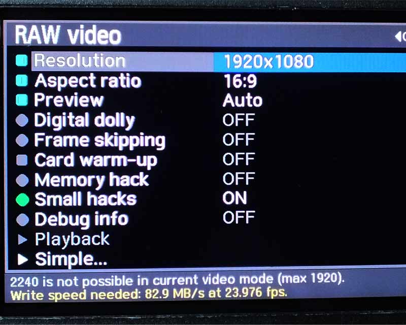 Wir hatten die Version 5D3.123 am Start. Die bietet sogar kompressionsfreie Aufzeichnung in 14 Bit RAW an. Die Weiterverarbeitung ist allerdings etwas für Qualitätsfanatiker: Die Dateien müssen mit dem kostenlosen Programm RAWMagic Lite von Rarevision in CinemaDNG umgewandelt werden, Die resultierende Datenflut verkraftet kaum ein Rechner, deshalb erstellt man in der Praxis in einem Color-Grading- Programm wie Da Vinci Resolve Proxy- Dateien in einem kleinen Zwischenformat – dann schneidet man und passt danach im Color-Grading-Programm den Look an.