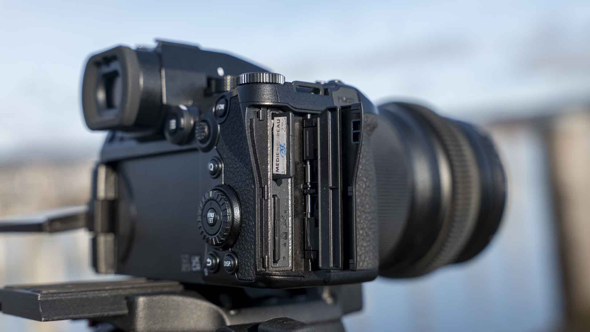 Panasonic bleibt bei den SD-Karten, wobei nun beide Schächte für UHS-II-Speicherkarten gerüstet sind. Höhere Datenraten, für die schnellere Speicherkarten nötig sind, bietet die S5II nicht.