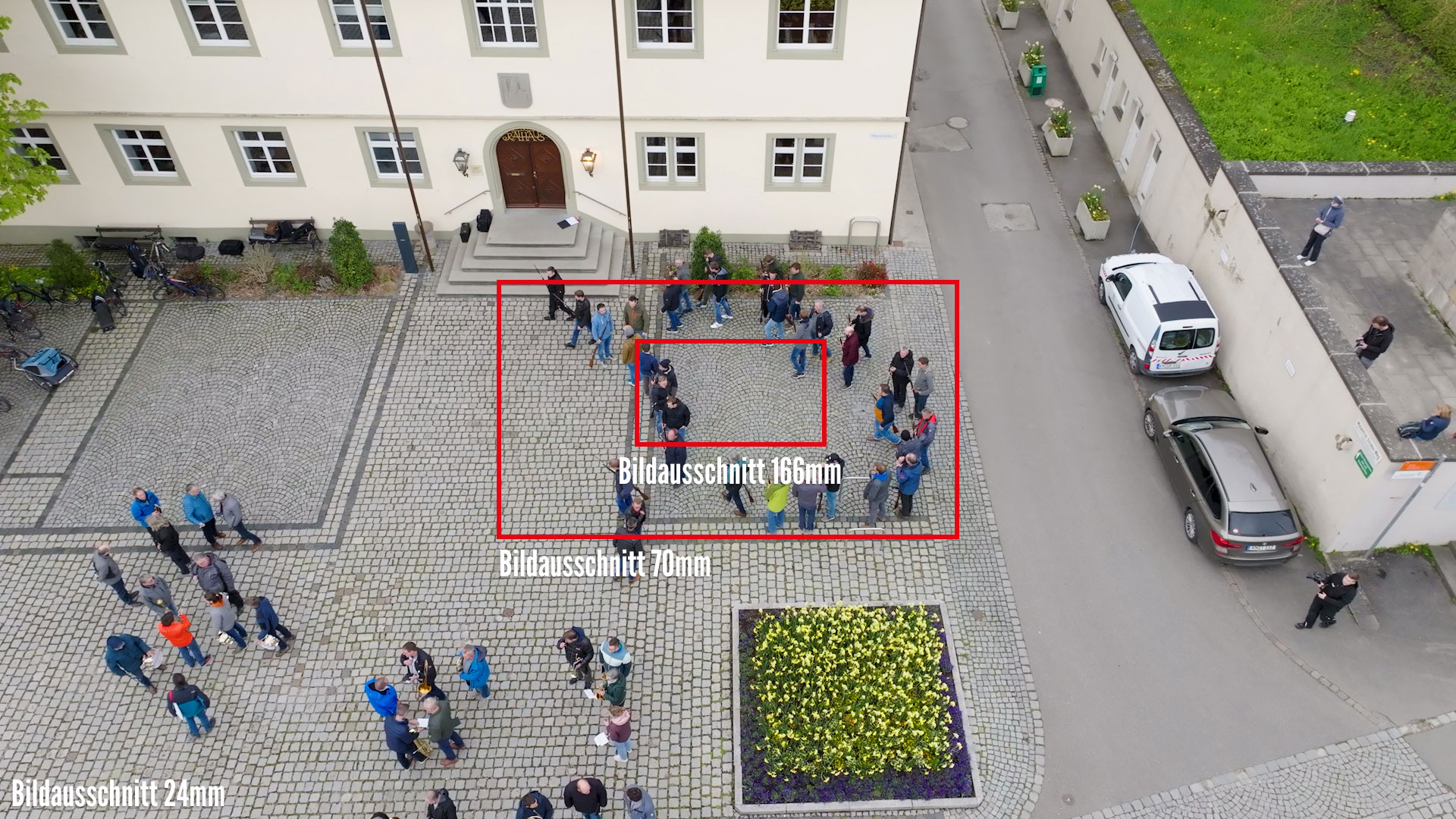 Drei Blickwinkel aus einer Position – die Mavic 3 Pro macht tatsächlich die Aufnahme aus der Ferne möglich, was gerade bei Veranstaltungen gut ist – schließlich darf man Menschenmengen nicht überfliegen.