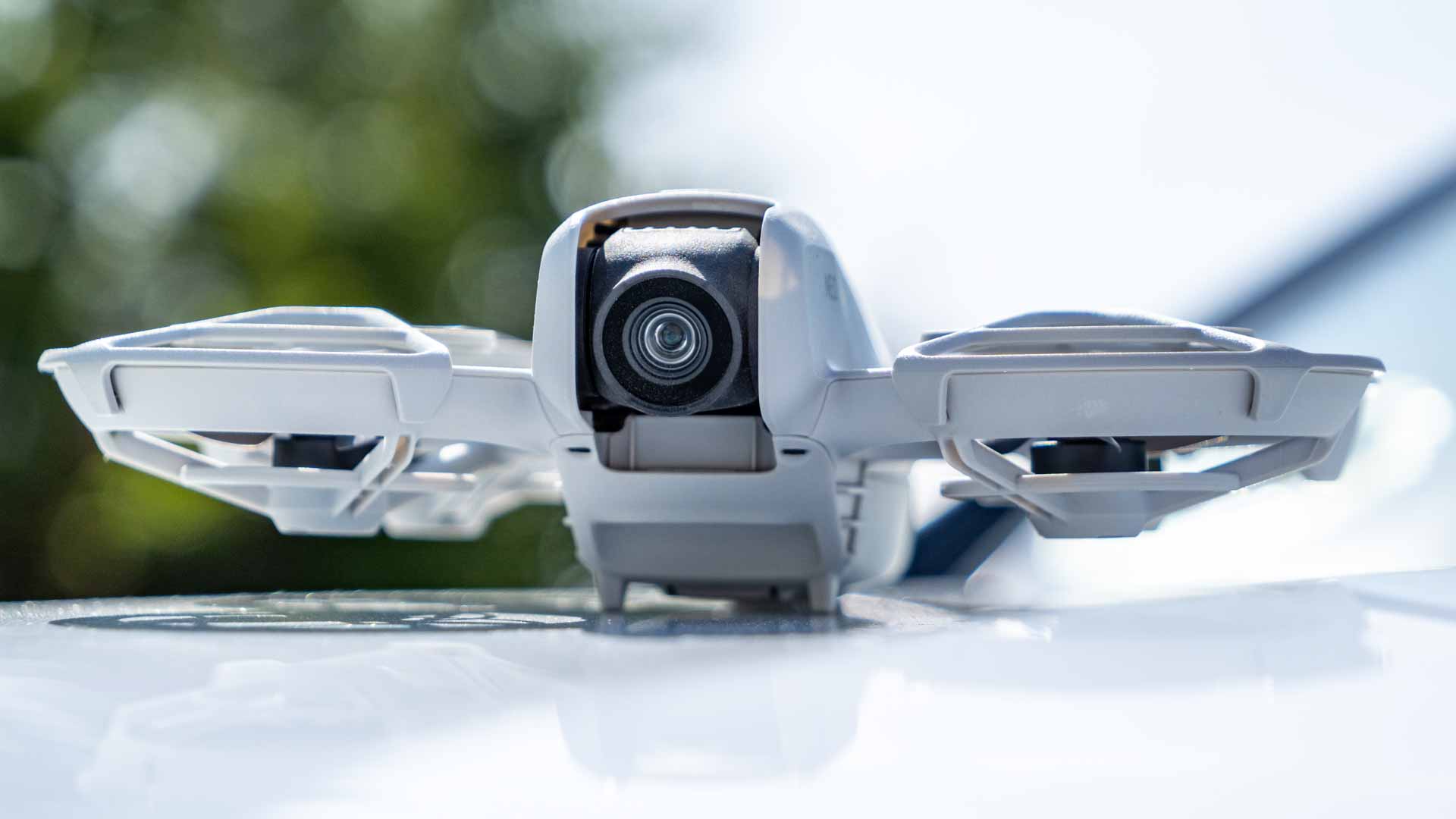 Die Propeller sind deutlich kleiner als bei der Avata – die auch schon keine Leisetreterin ist. Kleinere Rotorblätter müssen entsprechend schnell drehen, damit die Neo abhebt und das hört man doch deutlich. Sie hat ein sehr vergleichsweise hohes und dominantes Fluggeräusch, das auch noch in 50 Meter Höhe sehr störend am Boden wahrgenommen wird. Unauffällig ist sie also nicht – allerdings ist sie so klein, dass man sie in 50 Meter Flughöhe nur noch wahrnimmt, wenn man genau weiß, wo sie steht. Sucht man den Himmel nach ihr ab, hat man nahezu keine Chance. Zumal sie auch keine Signallichter hat, die eine Ortung leichter machen.