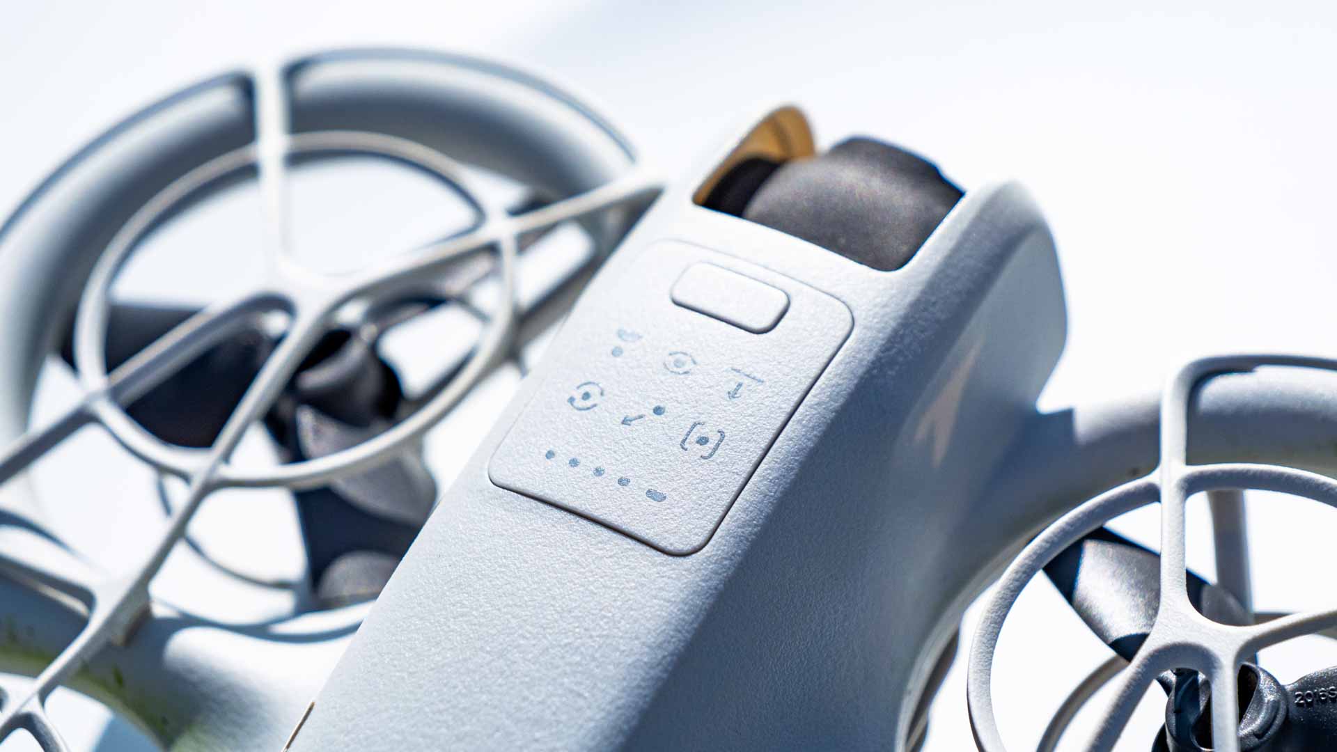 Die DJI Neo hat nur auf der Unterseite Sensoren, die für das Landemanöver wichtig sind. Denn nur mit der Information des Abstands kann die Drohne sanft auf dem Boden aufsetzen.