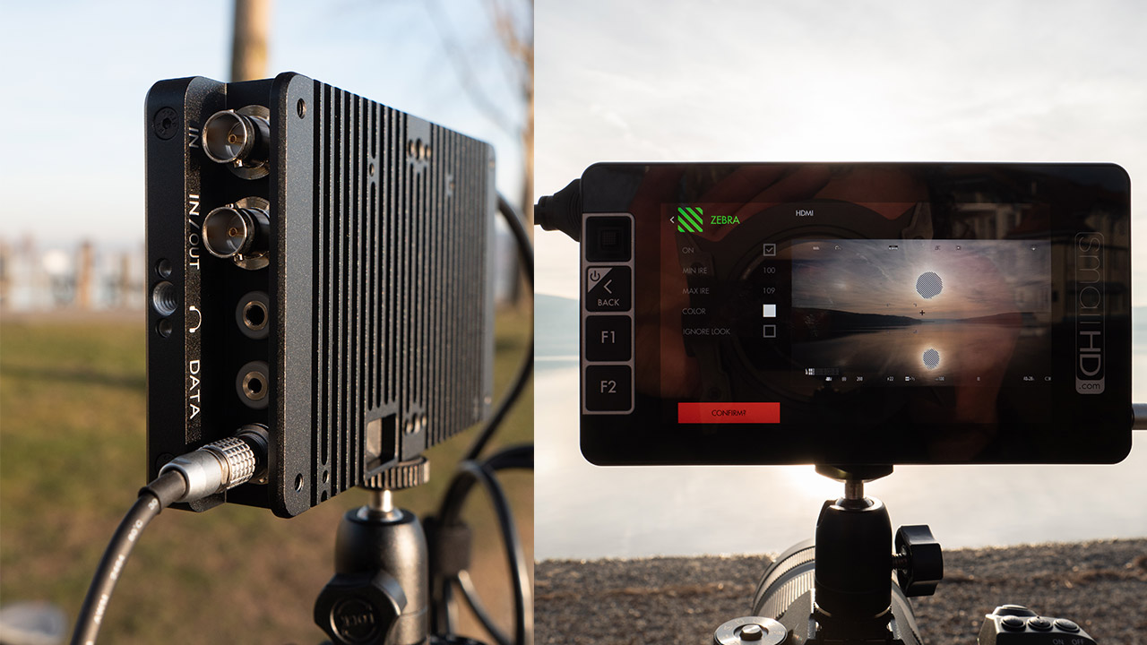 Der SmallHD 503 nimmt auch SDI-Signale entgegen und gibt das Signal gleich wieder aus; auf Wunsch auch parallel über die HDMI-Buchse auf der anderen Seite. Er zeigt bei Bedarf zwei unterschiedliche Pegel via Zebra an, wobei man die Anzeige jeweils als Set anlegt.