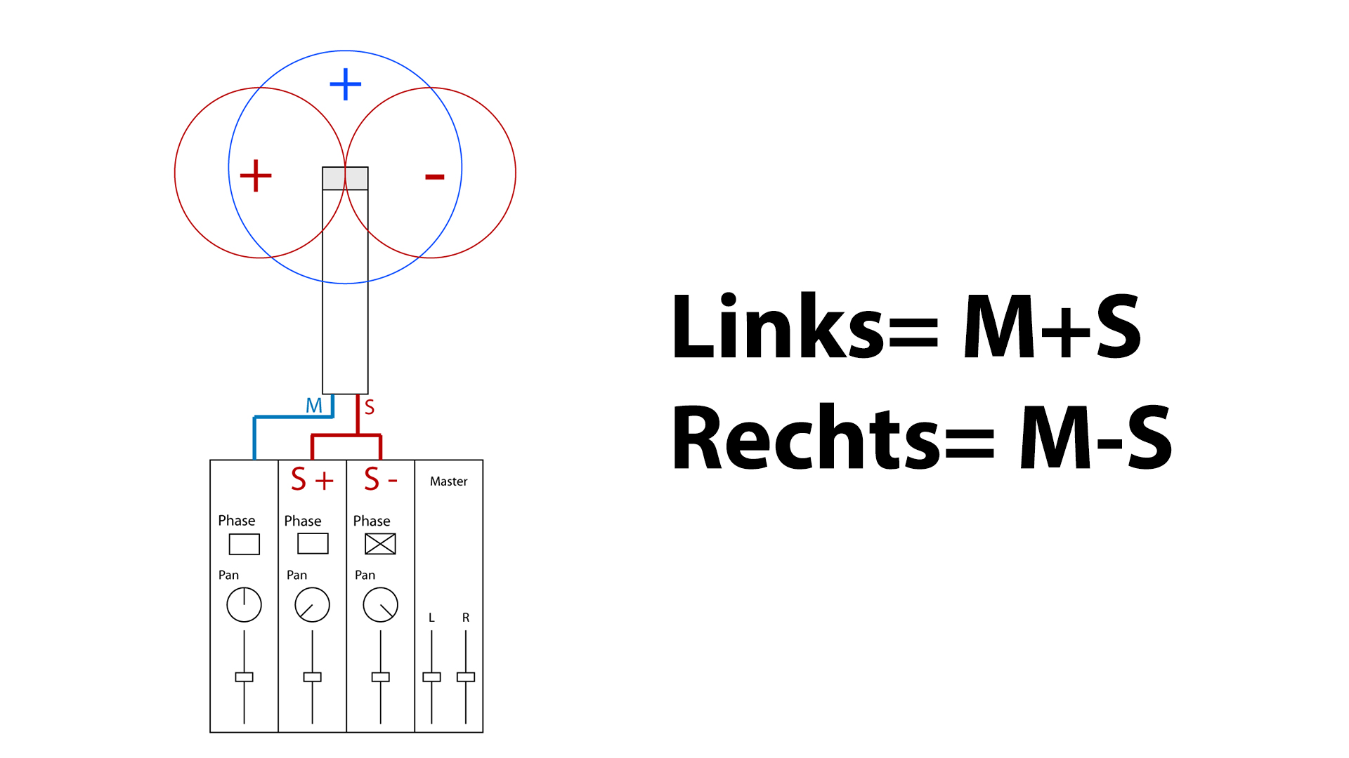 Mitte-Seite-Aufnahmen lassen sich auch mit zwei Mikrofonen und einem Mischpult realisieren. Mitten- und Seitensignal ergeben den linken Kanal, Mitten- und phasengedrehtes Seitensignal den rechten Kanal.