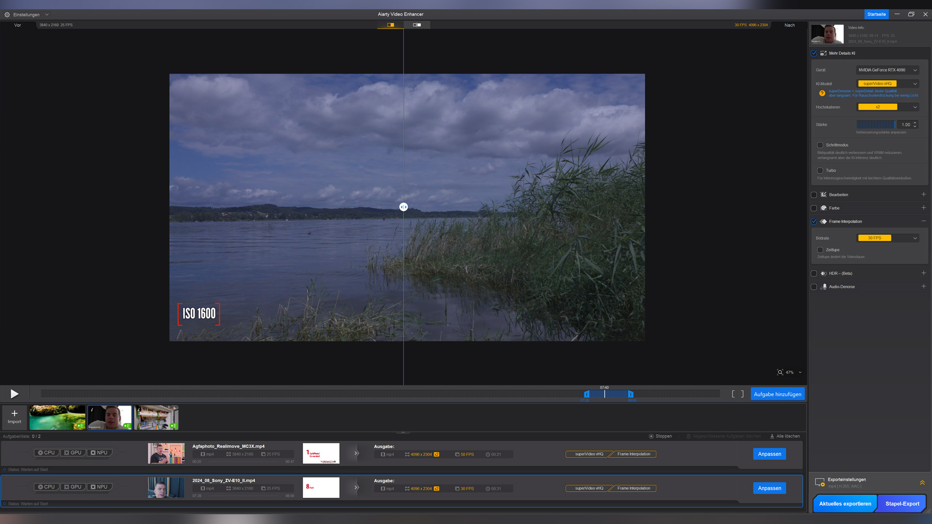 Jonas Schupp hat die drei KI-Modelle des Aiarty Video Enhancers ausgetestet und zeigt im Video den direkten Vergleich zwischen Ursprungs- und verbesserten Aufnahmen.