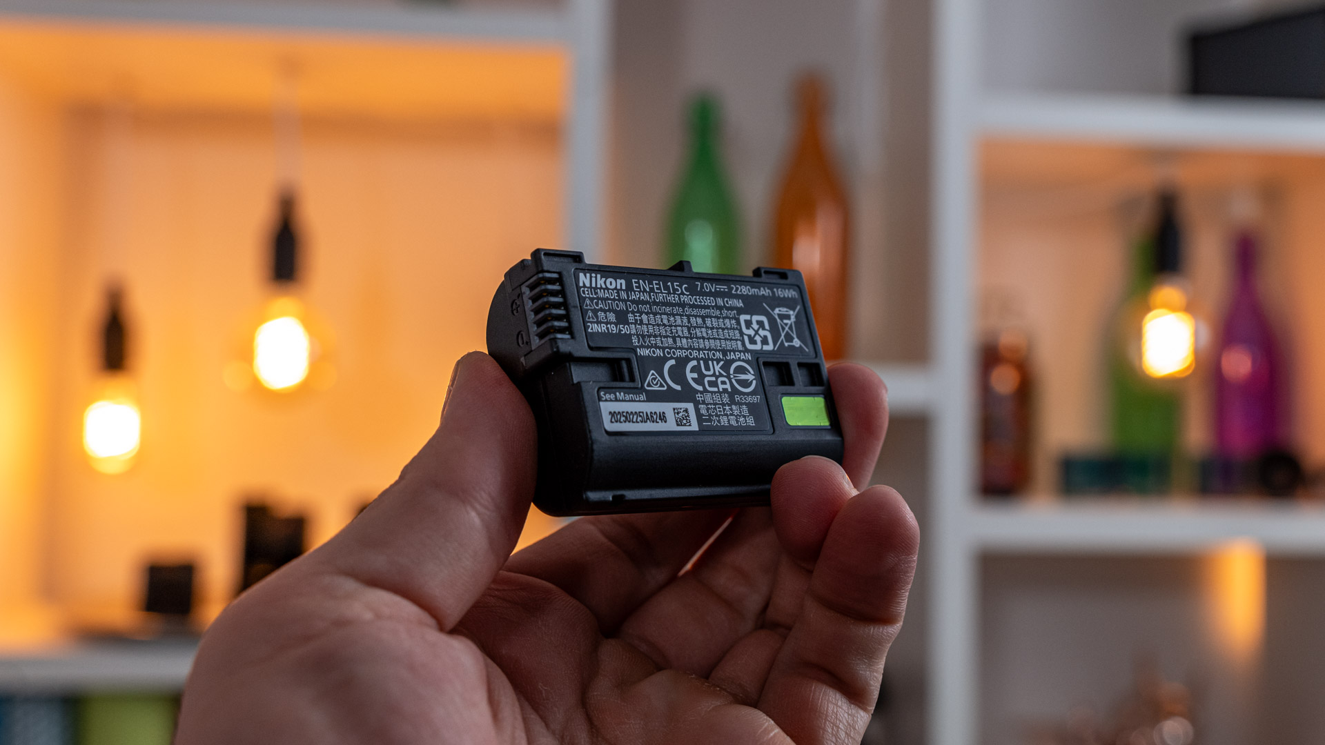 Ebenso wie bei der zur gleichen Zeit vorgestellten Canon C50 integriert Nikon das Akkufach in den Kameragriff. Das spart Platz, bedeutet jedoch auch dass man die Laufzeit nicht mit größeren, entsprechend mehr Kapazität besitzenden Akkus erweitern kann. Mit einer Akkuladung bekamen wir etwa eine Stunde reine Aufnahmezeit hin, was erstmal nach nicht besonders viel klingt, aber trotzdem für einen (nicht allzu langen) Drehtag reicht. Denn die ZR besitzt nicht nur den inzwischen üblichen Energiesparmodus mit automatischer Stand-By-Schaltung, sondern ist mit eineinahalb Sekunden extrem schnell aufnahmebereit. So gewöhnt man sich schnell an, die Kamera in Drehpausen auszuschalten und spart damit Energie. Ist man dann bereit, braucht die Nikon sehr kurz bis sie startklar ist – lediglich das Nikkor Z 28-135mm f/4 PZ lässt sich gut dreimal länger bitten, bis man am Zoom drehen kann.