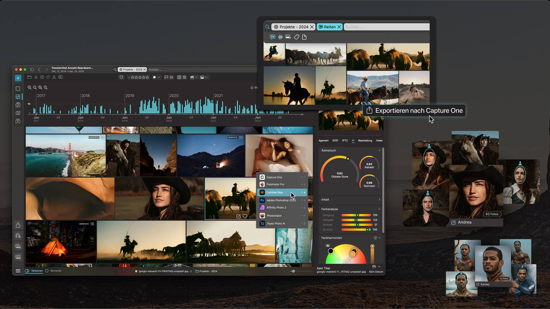 Peakto soll das Medienmanagement intelligent, sicher und angenehm machen - wobei man auf eine breite Kompatibilität setzt: So gibt es eine Integration mit Lightroom, Capture One, Adobe Premiere Pro, Final Cut Pro, DaVinci Resolve und vielen weiteren Programmen. Peakto ermöglicht die zentrale Ansicht und Organisation aller Projekte – auch wenn die Dateien auf externen Festplatten, NAS oder RAID-Systemen verteilt sind. Dazu liefert das Tool eine KI-gestützte Suche und soll Szenen, Aufnahmen oder ein gesprochenes Zitat durch einfache Texteingaben oder mithilfe ähnlicher Bilder inklusive Gesichtserkennung finden. Mehrstufige Filter ermöglichen eine schnelle und gezielte Suche. Durch die cloud-unabhängige Architektur bleiben alle Dateien lokal und sicher gespeichert.