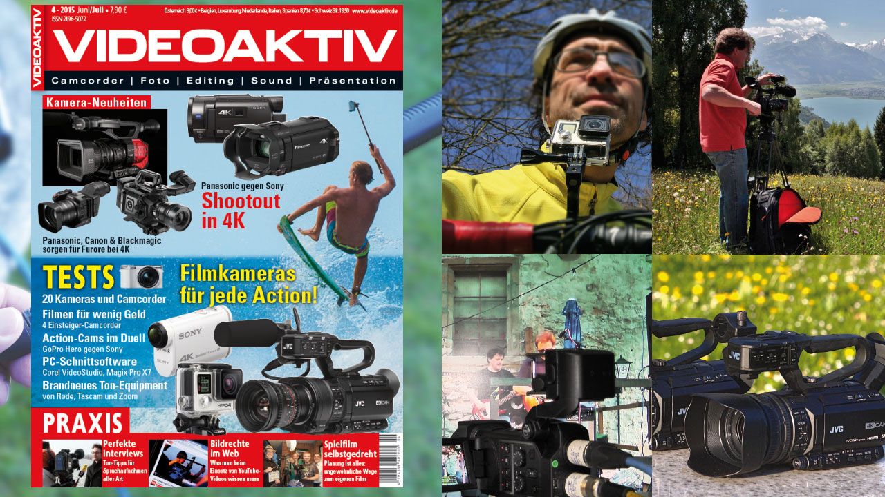 Ab heute kann man die neue VIDEOAKTIV 04/2015 am Kiosk kaufen. Neben ausführlichen Praxis-Tests, Workshops und Ratgebern, testet die Redaktion den Panasonic HC-WX 979, Sonys FDR-AXP33 sowie die 4K-Profis JVC GY-HM 200 und -LS300.