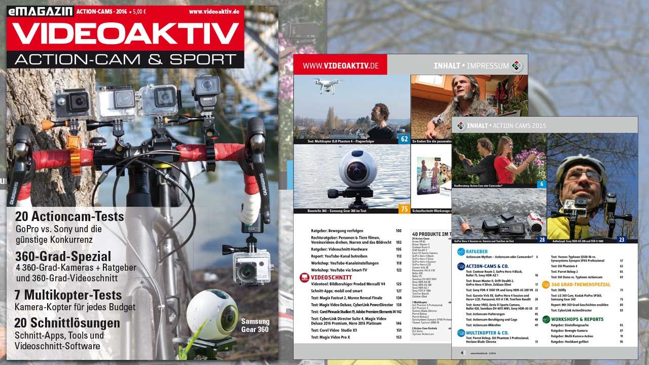 Das neue VIDEOAKTIV Sonderheft „Action-Cam & Sport 2016“ ist ab sofort digital erhältlich. Auf starken 155 Seiten lesen sie über 20 Actioncam-Tests sowie ein großes 360-Grad-Spezial. Daneben liefern wir Workshops und Ratgeber rund um die kleinen Outdoor-Künstler und beleuchten den Videoschnitt.