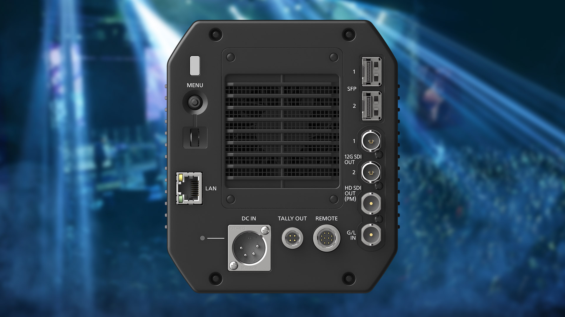 Wie es sich für eine Studiokamera gehört, besitzt die AK-UBX100 zahlreiche Anschlüsse an der Rückseite