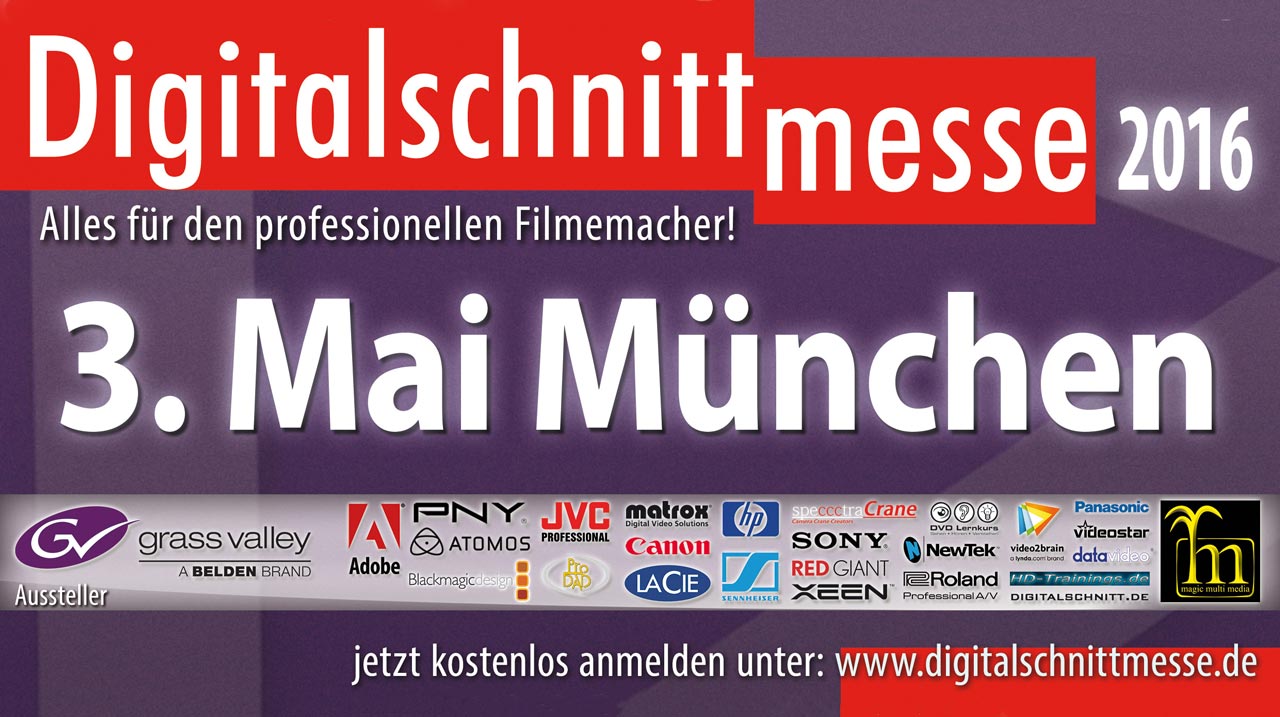 Die Digitalschnittmesse soll aber auch 2016 wieder die bewährte Kombination aus Messe, Workshops und Fachvorträgen liefern. Die Aussteller bringen wieder die Produktneuheiten rund um Kameras, Audio, Videoschnitt und Postproduktion mit – wobei auch wieder Neuheiten direkt von der NAB Show aus Las Vegas dabei sein sollen, die damit erstmalig in Deutschland zu sehen sind. Wie vom deutschen Distributor von Grass Valley Edius-Schnittsoftware nicht anders zu erwarten steht dieses Programm natürlich im Mittelpunkt der Messe. Zu sehen sind die Features der neuen Version Eidus 8.2, deren Veröffentlichung zur NAB erwartet wird.