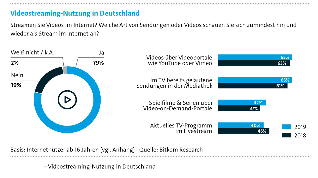 Die Mehrzahl der haushalte stremt bereits Videos, wobei YouTube & Co. noch immer die größte Bedeutung hat.