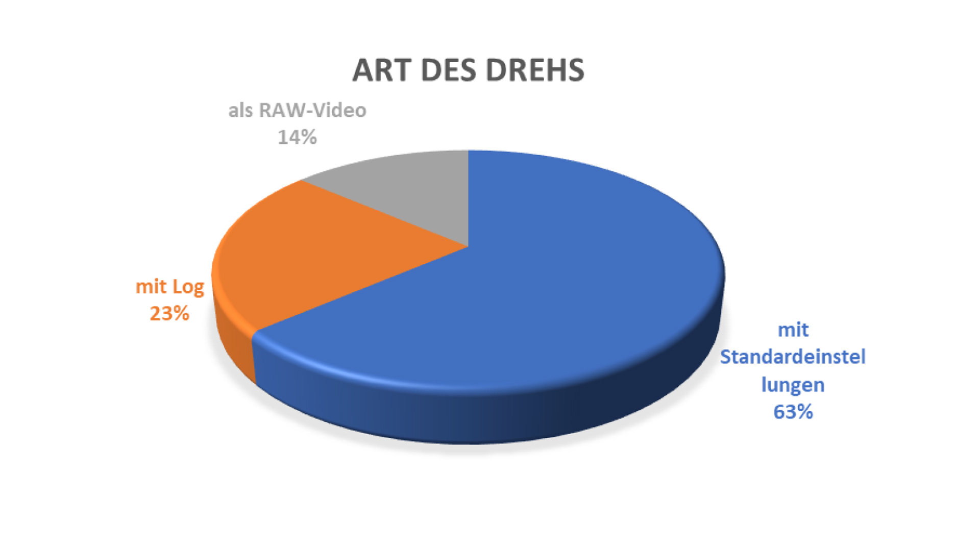 Um es direkt zu sagen: Eine wirklich repräsentative Umfrage ist es bei 625 befragten Teilnehmern natürlich nicht, zumal die Teilnehmer sowohl aus dem professionellen Produktionsalltag (30 Prozent) als auch aus dem Hobbyisten-Lager (70 Prozent) kamen. Doch schon das Interesse an Farbmanagement, definiert wie populär das Filmen mit Log-Profilen oder in RAW-Dateien geworden ist. Das liegt nicht zuletzt an der Nutzung unterschiedlicher Kameras, denn die meisten nutzen mehr als ein Kamera-System im Rahmen eines Filmprojekts und müssen deshalb mit unterschiedlichen Farbcharakteristika arbeiten. Das erhöht den Zeitaufwand für den Farbabgleich des Footage-Materials zwangsläufig.