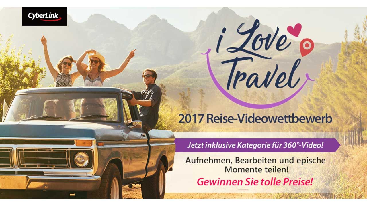 Bereits zum sechsten Mal veranstaltet CyberLink seinen Videowettbewerb „I Love Travel“ rund ums Thema „Reisemomente“. Der Wettbewerb richtet sich an Video-Neulinge wie erfahrene Cutter und ist jetzt ums Thema 360-Grad erweitert.