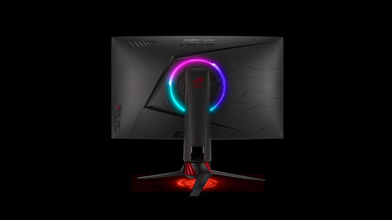 Das Curved-Display ist um 1500R geschwungen und arbeitet mit einer Bildwiederholfrequenz von 165 Hertz sowie Flicker-Free-Technologie zum Schutz der Augen bei längerem Arbeiten. Die Anschlussleiste offeriert zweimal HDMI 2.0 sowie DisplayPort 1.2. Für den Anschluss von Peripheriegeräten bietet der Asus noch zwei USB 3.0-Ports und kann auch mit einer Kopfhörerbuchse für 3,5 Millimeter Klinke dienen. Der Standfuß erlaubt das Neigen um -5 bis 20 Grad und lässt sich um 50 bis -50 Grad drehen. Auch eine Höhenverstellbarkeit um 10 Zentimeter ist machbar.