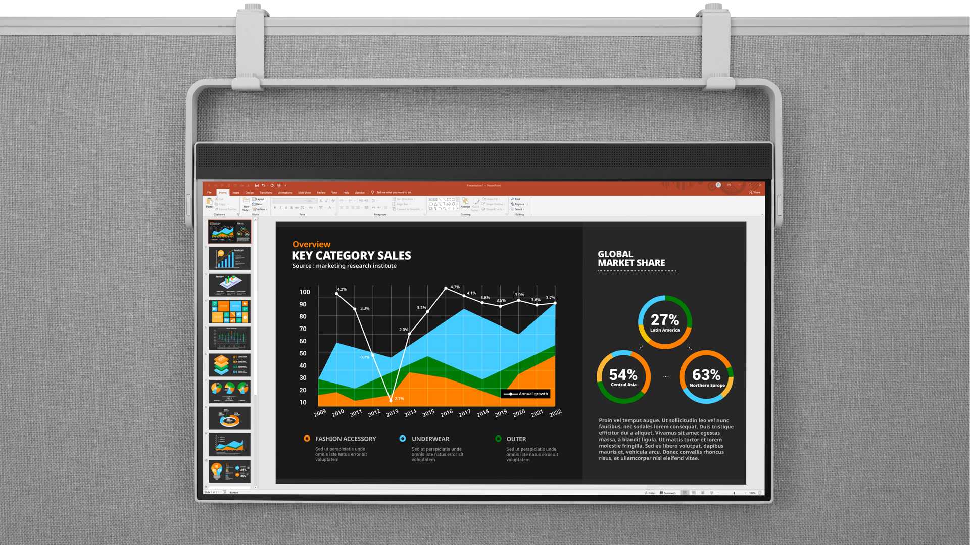 Den LG Libero 27BQ70QC kann man anhand zweier Tragebügel auch an eine Wand oder einen Abtrenner hängen.