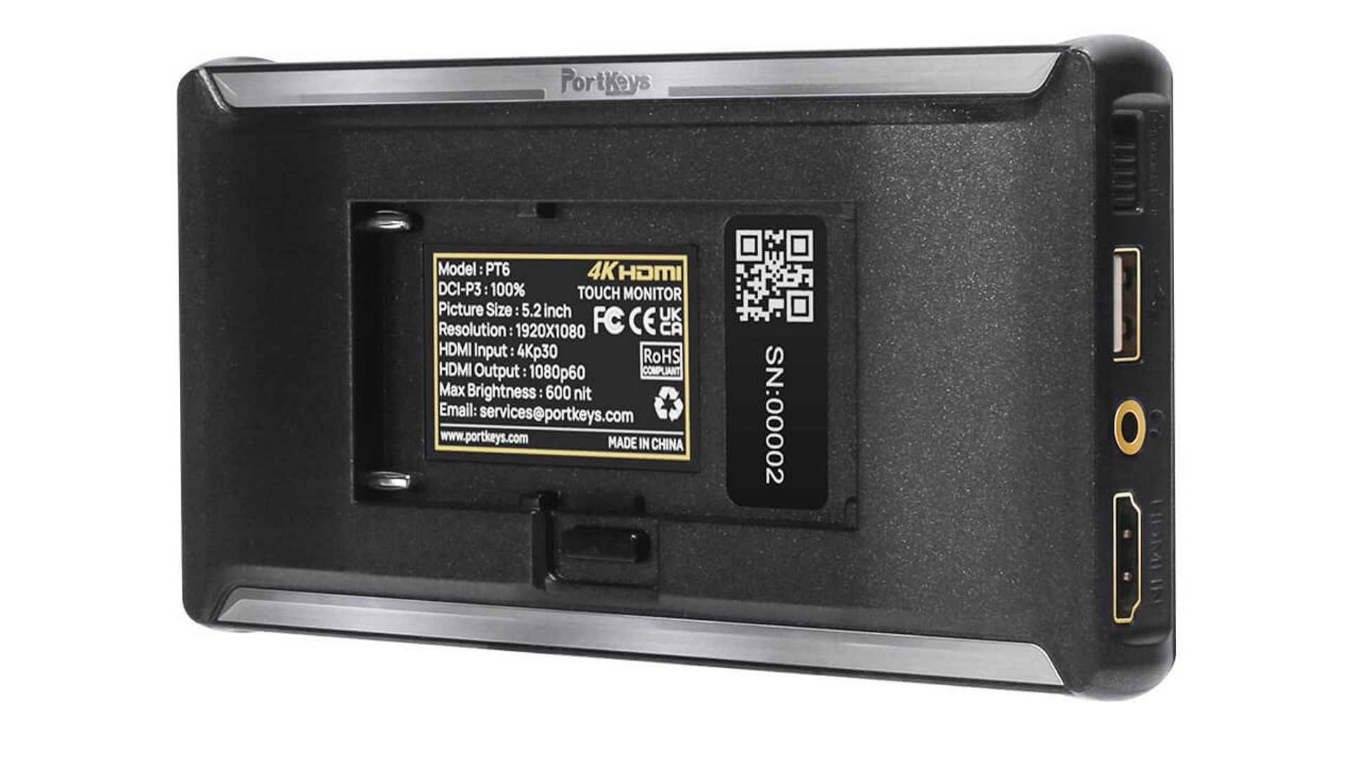 Der Portkeys PT6 liefert natives Full-HD auf einem 5,2 Zoll großen IPS-Touch-Display mit 600 nits Helligkeit und unterstützt ein eingehendes Videosignal für bis zu DCI-4K 24p.