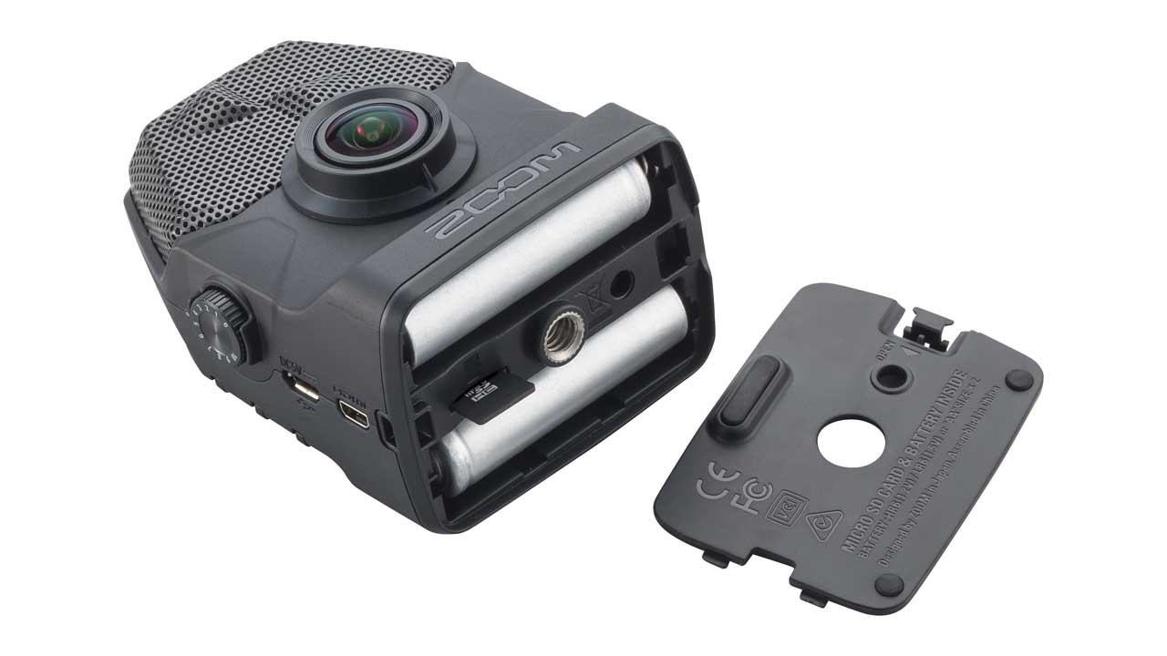 An der 3,5 mm Stereo-Klinkenbuchse lassen sich externe Mikrofone oder sonstige Signalquellen anschließen und zum Abhören steht neben dem integrierten Lautsprecher eine Kopfhörerbuchse zur Verfügung. Für das Videobild bietet der Q2n einen 1,77 Zoll kleines Display. Wer wirklich etwas sehen will nutzt den HDMI-Anschluss und verbidet das Gerät mit dem Fernseher. Mit Strom wird er via zwei AA-Batterien versorgt.