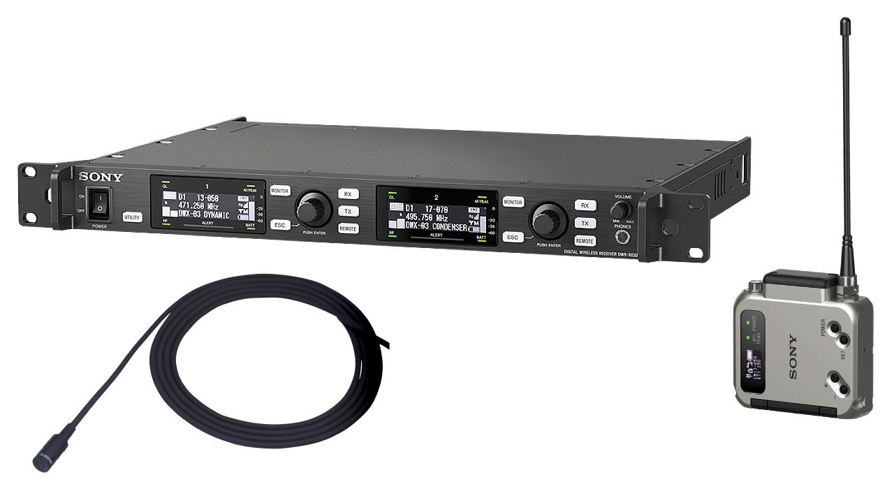 Der kleine Taschensender liefert einen Breitbandbetrieb von 148 Megahertz und wird von einem wiederaufladbaren Lithium-Ionen-Akku mit Strom versorgt. Der DWR-R03D ist der 1U-Empfänger und ist für den Rackeinbau mit zwei Kanälen geeignet. Er ist zu Sonys „Dante“, einer digitalen Netzwerktechnologie kompatibel, die Audio via IP überträgt. Der Empfänger unterstützt Redundanz und Kopfhörerkontrolle sowie Netzwerkaudio über mehrere Kanäle. Das BC-DWX1 Ladegerät ist mit PoE-Funktionen (Power over Ethernet) ausgestattet und erlaubt es den Ladezustand über eine PC-Software zu überprüfen und zwei Taschensender oder Akkus gleichzeitig aufladen. Das Herzstück bildet schließlich das ECM-77LM, als neues omnidirektionale Mini-Elektretkondensatormikrofon, das über einen kleinen 3-poligen Anschluss verfügt. Es zeichnet sich laut Sony „durch einen umfassenden Frequenzbereich, eine hohe Empfindlichkeit und geringes Rauschen aus.“