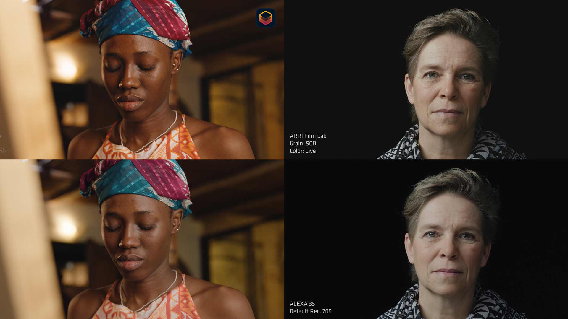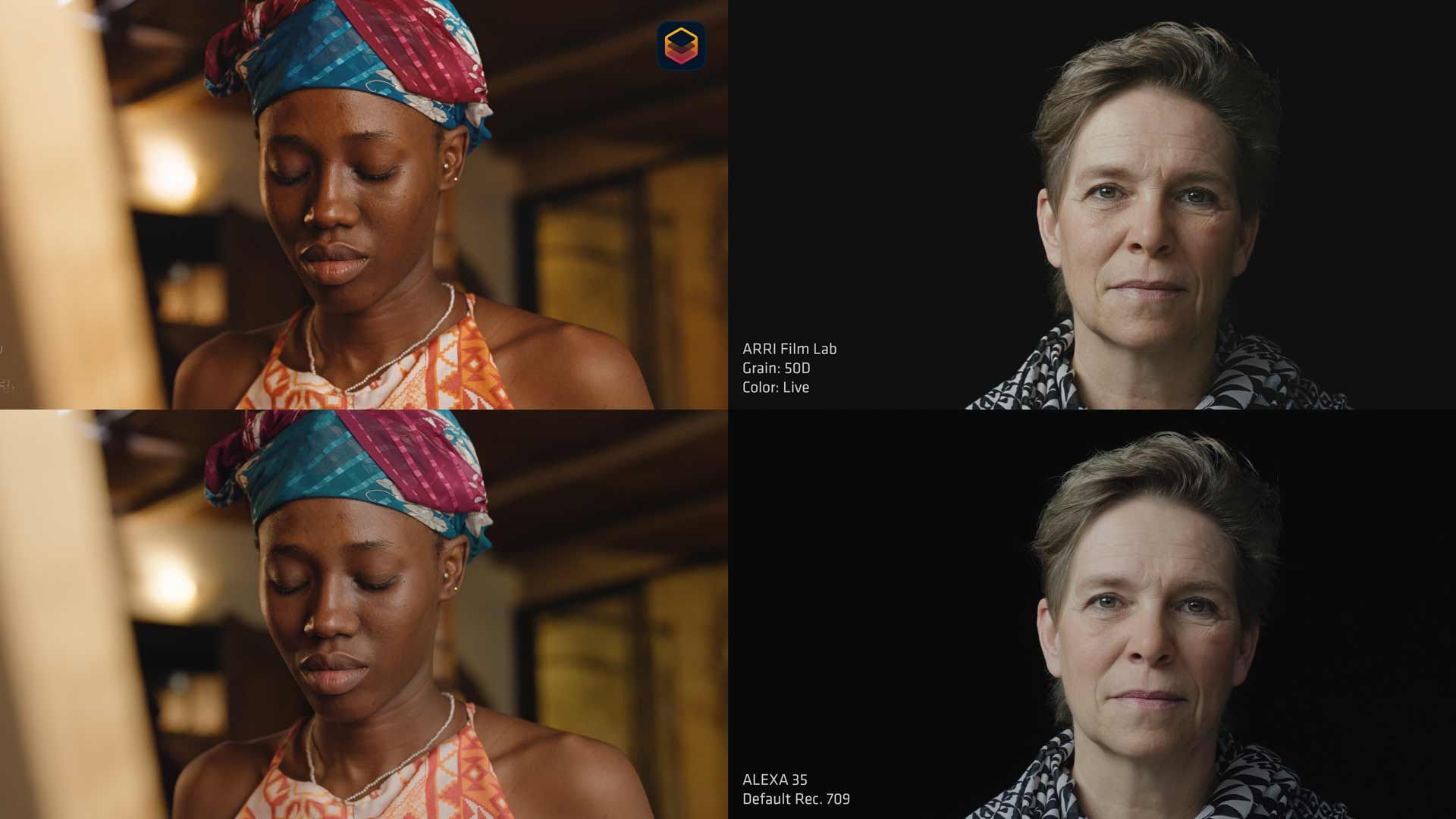 Arri Film Lab bietet eine einfache kreative Kontrolle über die Maserung, Farbe, Halation und Gate Weave zu ermöglichen, die mit analogen Folienmaterialien und Postprozessen verbunden sind. Film Lab ist kompatibel mit RGB-Bildern von allen Kameras, die in eine Arri-Pipeline importiert werden, und wird in Kürze durch Vorschaufunktionen am Set in den neuesten Arri-Kameras ergänzt. Die Einstellungen in Arri Film Lab umfassen die wichtigsten Merkmale von analogem Filmmaterial, das in einem traditionellen fotochemischen Labor verarbeitet wird. Die Körnung kann auf das Äquivalent eines negativen Materials von 50D, 200 T oder 500 T eingestellt werden, und die Farbeinstellungen umfassen verschiedene Druckmaterialien und Prozesse, wie zum Beispiel Umkehrung und Bleach Bypass. Die Intensität von Farbe und Körnung kann schrittweise angepasst werden, ebenso wie die Halation-Einstellung – die den rot-orangefarbenen Halo um Lichter und kontrastreiche Kanten emuliert, die durch Lichtreflexion durch Filmschichten verursacht werden – und das Gate Weave-Einstellung, die die leichte Unstetigkeit simuliert, die typischer Weise in Filmaufnahmen zu sehen ist.