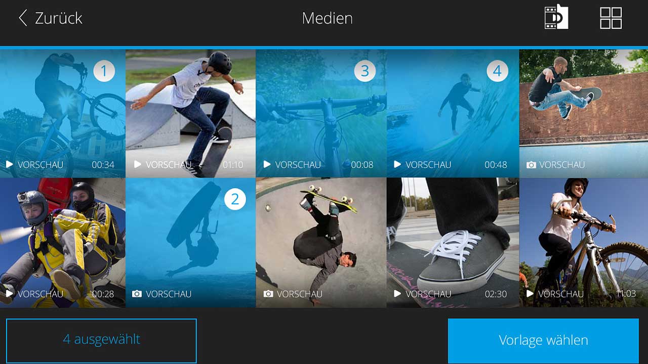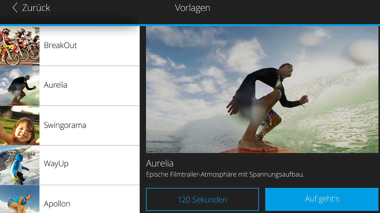 Anhand einer Schnittvorlage erstellt Fastcut einen Film nahezu automatisch. Projekte sind mit 15, 30 und 60 Sekunden Länge machbar.