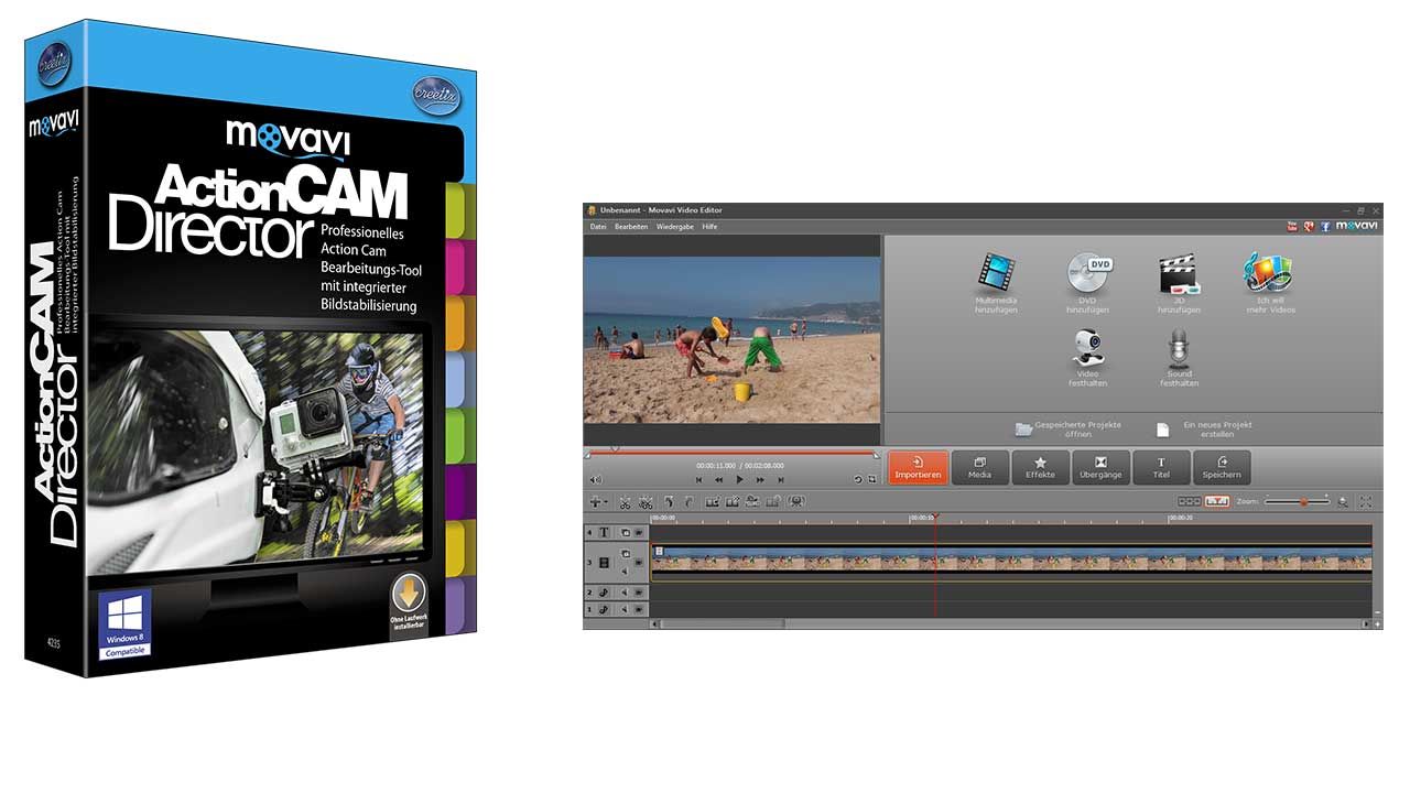 Was FastCut für Magix, soll wohl der ActionCAM Director für Movavi sein. Wie aus der Produktbezeichnung ersichtlich, zielen die Entwickler auf Actioncam-Begeisterte, die aus ihrem GoPro-Material schnell „fetzige“ Videos erstellen wollen.