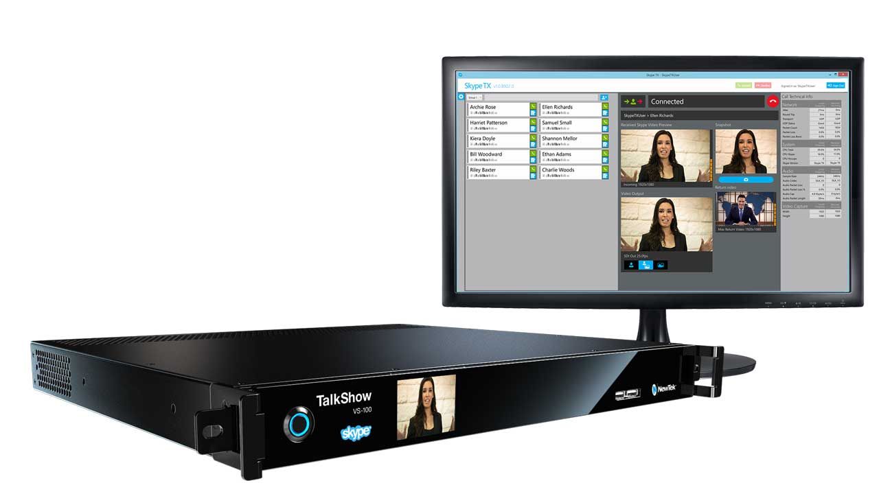 NewTek liefert ab sofort das System TalkShow VS-100 aus, das speziell für Fernsehsender und Liveproduktionen ausgelegt ist und Skype Videos so aufbereitet, dass sie sich in eine Studioumgebung einbinden lassen.