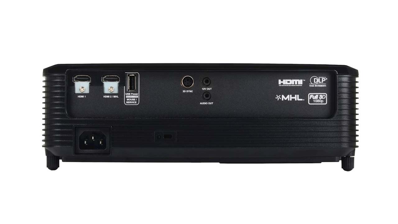 Die Farbwiedergabe soll dank des neue Farbrades mit Unterstützung für den Rec.709-Standard sehr akkurat sein. Inwieweit sich der Regenbogen-Effekt beim HD142X (der grundsätzlich bei DLP-Geräten auftritt) negativ für den ein oder anderen Betrachter auswirkt, kann man nur selbst testen. Die Anschlussleiste besteht aus zweimal HDMI 1.4a mit MHL-Kompatibilität sowie ein Audio-Ausgang für 3,5 Millimeter Klinke. Auf analoge Schnittstellen für Composite und Component verzichtet Optoma komplett.