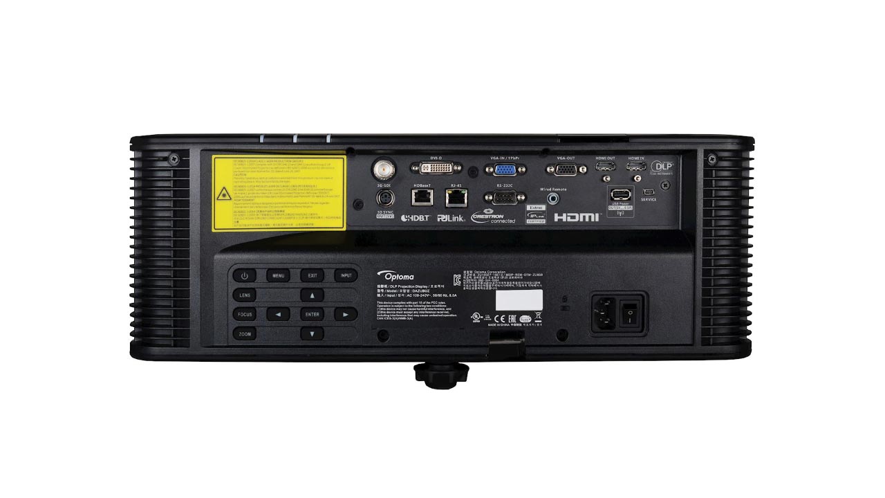 Er bietet 100 Helligkeits-Modi und ist für den 24/7-Betrieb wie die flexible 360-Grad-Installation geeignet. Die Auflösung liegt bei WUXGA, also 1920 x 1200 Pixel, womit er ein Bild im 16:10 Format zeigt. Zoom, Fokus und Lens-Shift sind motorisiert. Eine Trapezkorrektur greif für +/-20 Grad in der Vertikalen wie Horizontalen. An Videoanschlüssen offeriert der Optoma einmal HDMI, DVI-D, HDBase T, SDI, Component, VGA, VGA Out sowie HDMI Out. Eine Netzwerkbuchse ist ebenfalls mit an Bord. Das Betriebsgeräusch soll im Eco-Modus bei 32 Dezibel liegen.