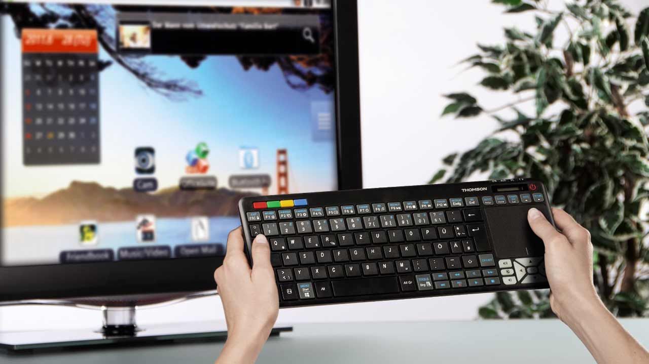 Mit dem Fernseher ins Internet und auf YouTube gehen, das unterstützten die meisten Fernseher. Die Handhabung mit der Fernbedienung ist aber umständlich und eine weitere Tastatur lästig. Die Thomson ROC3506 vereint deshalb beides.