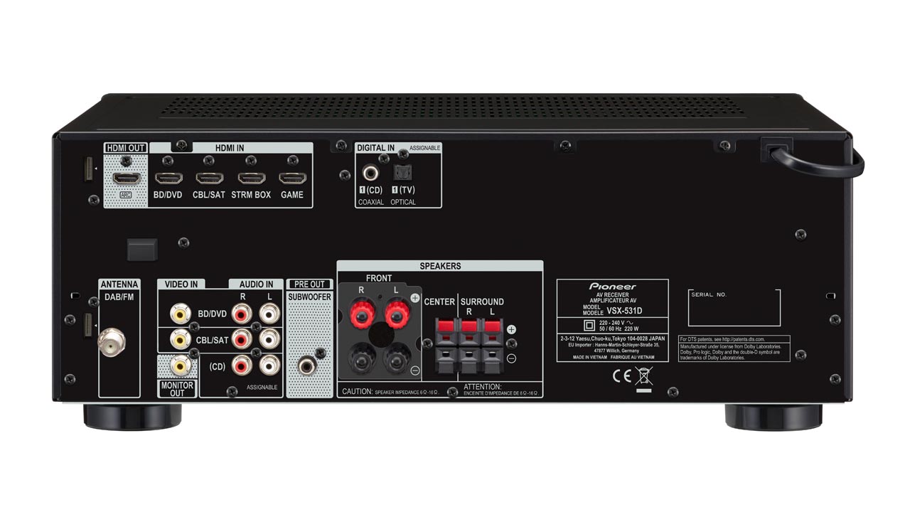 Der Pioneer VSX-531D ist en günstiger 4K-HDR-Receiver für Einsteiger und deckt neben den neuesten Videoformaten auch die meisten aktuellen Audio-Formate ab.