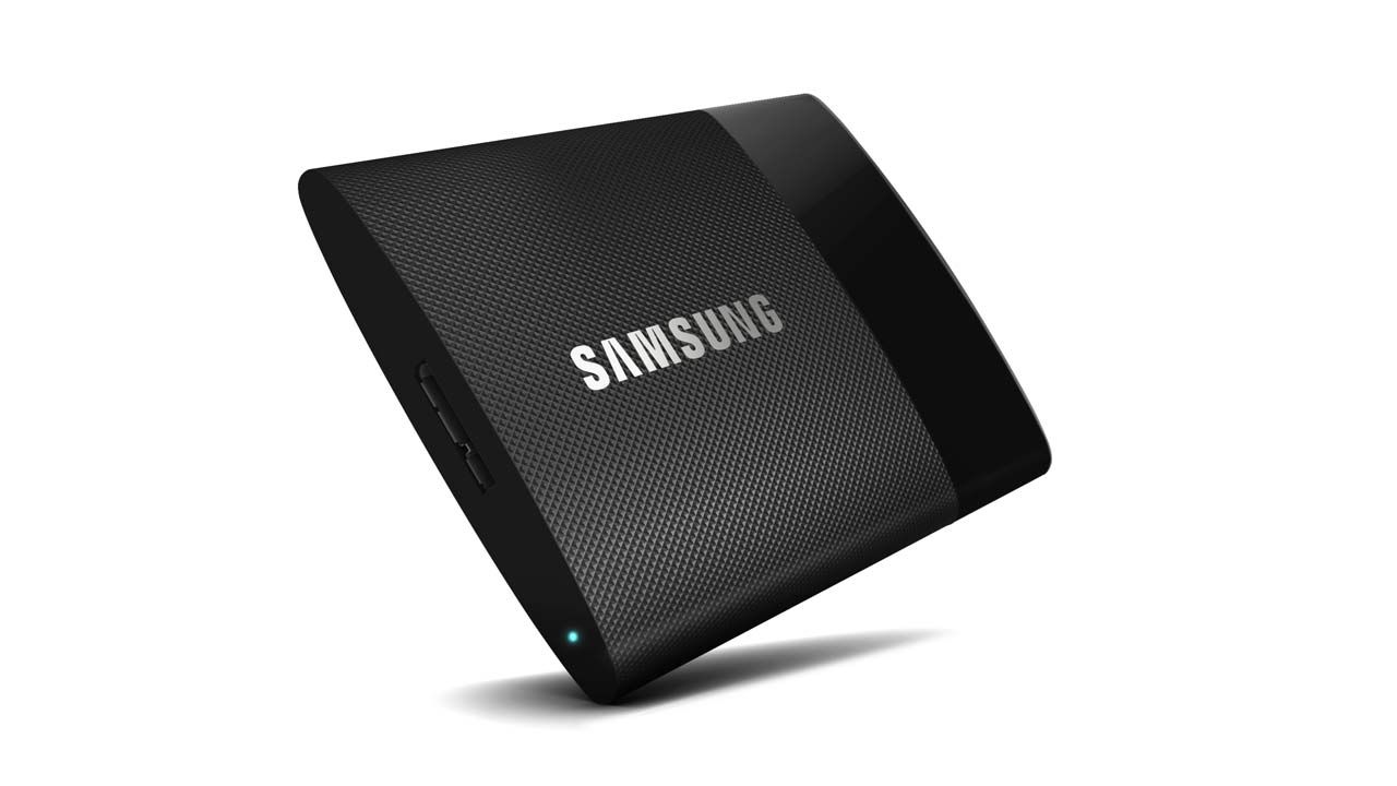 Samsungs Antwort auf Online-Speicherdienste heißt Portable SSD T1: Das externe Laufwerk ist in etwa so groß wie eine Visitenkarte und mit Kapazitäten von 250 GB, 500 GB und 1 TB erhältlich.